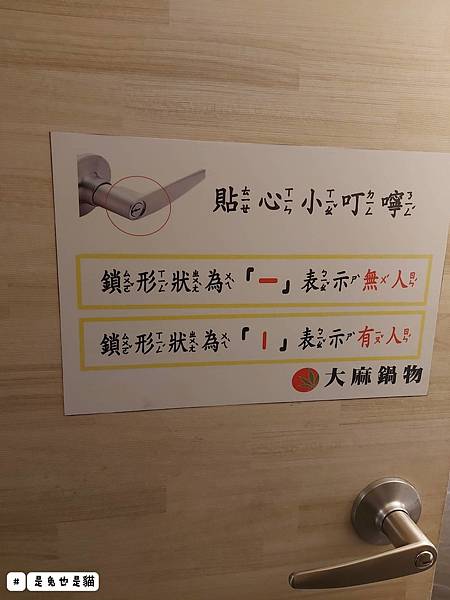 洗手間也是很明亮又乾淨,門上還有貼心叮嚀!