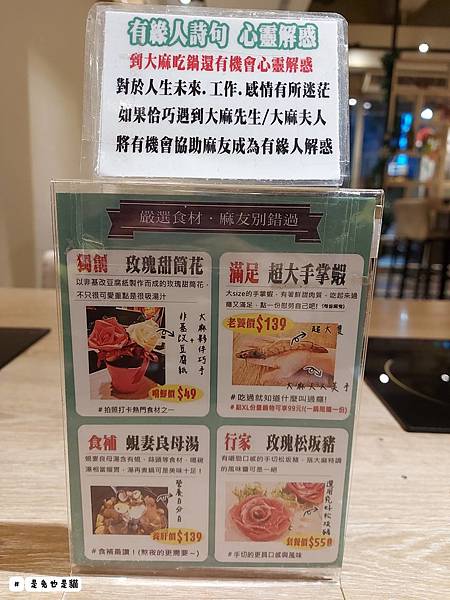 當然也可以點點這裡獨創豆腐紙玫瑰花、超大蝦蝦、超補蜆母湯、好看又好吃的玫瑰松阪豬!
